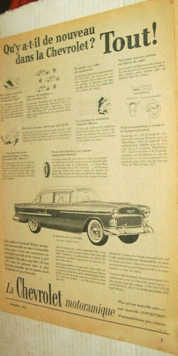 Title (ebay affiliate link): 1955 CHEVROLET BEL AIR SEDAN 4-DOOR AUTOMOBILE ORIGINAL AD IN FRENCH