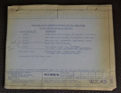VTG 1959 Willys FC-170 Dual Wheel Vehicle Assembly Mechanical Drawing 9000 Lb