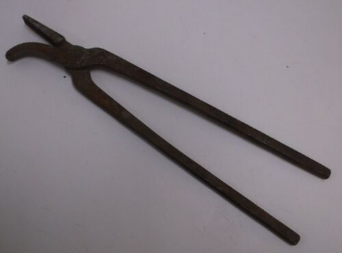 VINTAGE BLACKSMITH FARRIER CURVED JAW HOOF CLINCHER TONGS PLIERS, 13 1/2" USA