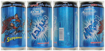 Mirinda Superman punch 'New' can from Saudi Arabia.