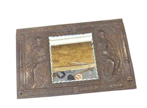 Antique Copper/Bronze Hat Rack Art Nouveau Repousse Mirror 20" x 12.5" Victorian