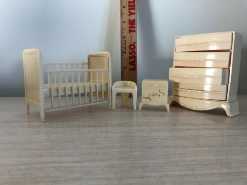 Title (ebay affiliate link): VINTAGE Plasco DOLLHOUSE Baby Furniture Crib, Dresser with opening drawers