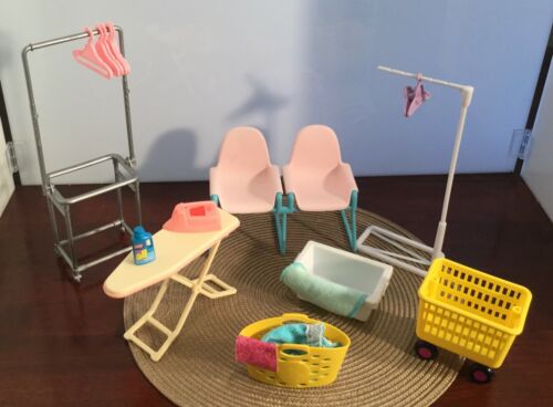 Title (ebay affiliate link): BARBIE Vintage DOLL LOT Laundry Room BASKET CHAIRS Furniture HOUSE SET