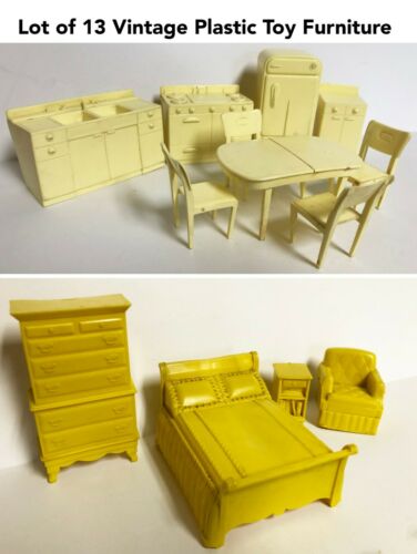 Title (ebay affiliate link): Vintage Lot of Marx Plastic Dollhouse Toy Furniture 13 pcs Bedroom Kitchen