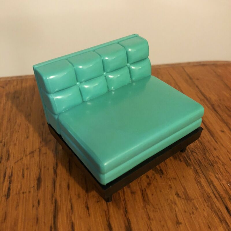 Title (ebay affiliate link): Vtg Doll House Furniture IDEAL 1969 Mid Century Modern Turquoise Footed Chair