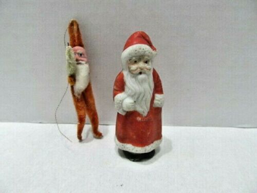 Vintage Santa Lot of 2 Pipe Cleaner Chenille and Bisque Made in Japan