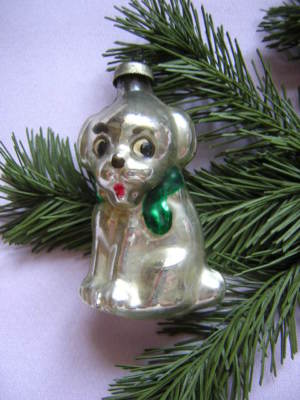 OLD RUSSIAN GLASS CHRISTMAS ORNAMENT PUPPY