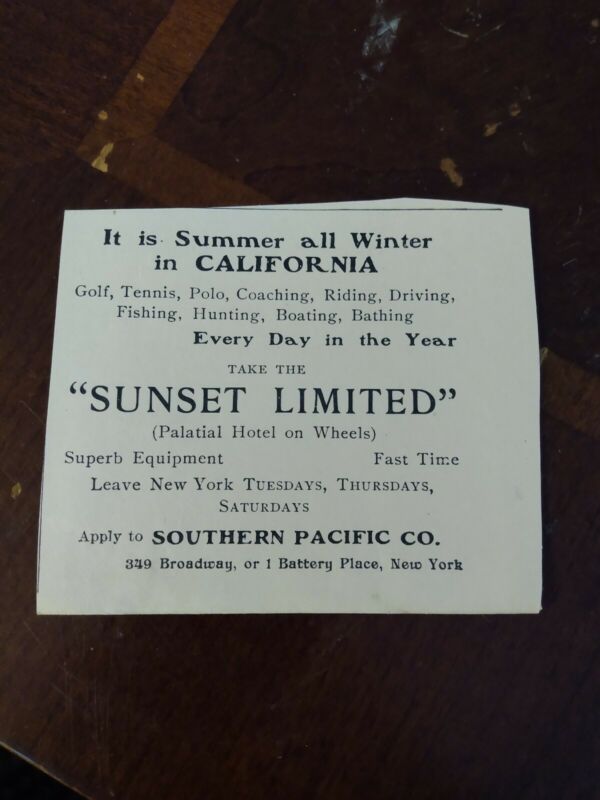 Title (ebay affiliate link): Vintage Railroad Advertising Southern Pacific RR 1901