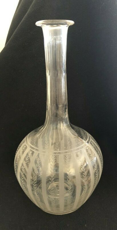 ANTIQUE HAND BLOWN ETCHED GLASS WINE DECANTER