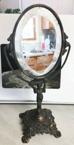Title (ebay affiliate link): Vintage Golden Mfg Chicago Art Nouveau Geisha Metal Vanity Mirror - 18.5" Tall