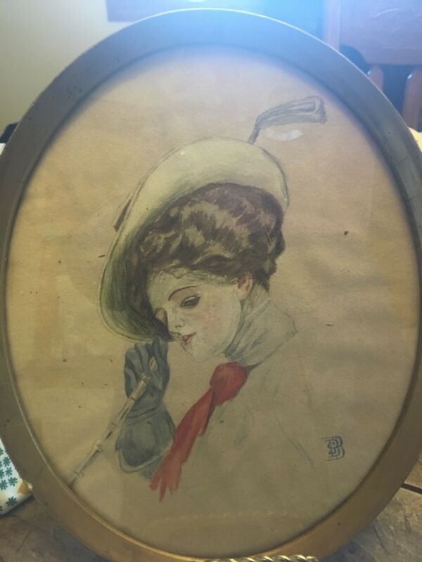 Antique Victorian Lady Portrait Watercolor Painting Gold wood frame Trenton Mo 2