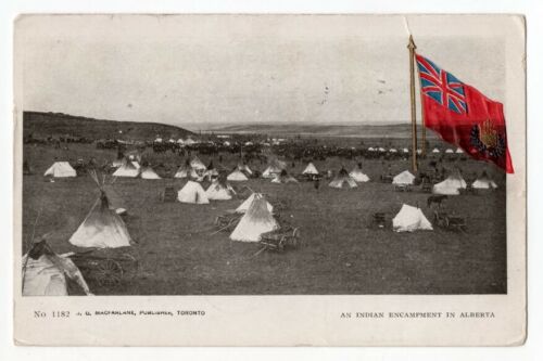 Title (ebay affiliate link): An Indian Encampment in Alberta Canada with Flag MacFarlane Toronto 1905