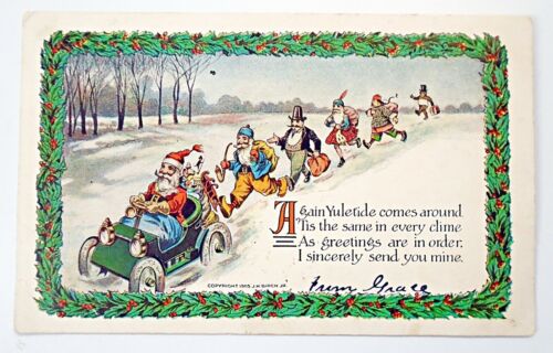 SANTA CLAUS driving car JH Birch 1905 christmas ANTIQUE POSTCARD undivided back