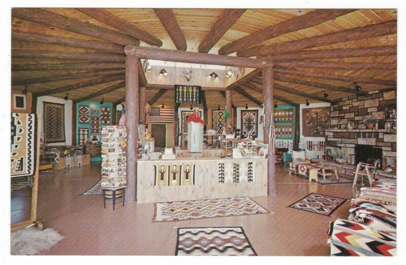 vintage postcard. Mancos Colorado The Navajo Trail rugs baskets pottery jewelry