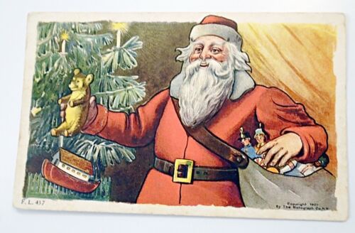 1907 rotograph co. SANTA CLAUS ANTIQUE POSTCARD christmas tree embossed