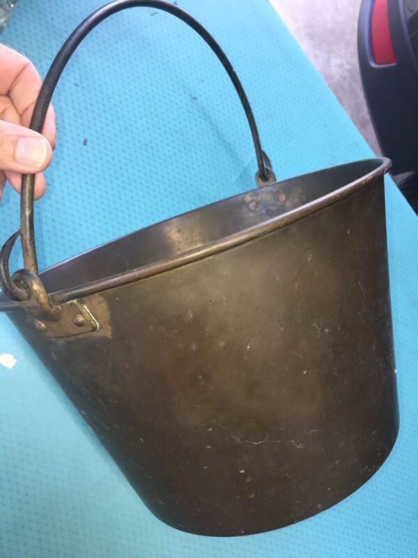 Title (ebay affiliate link): Antique 1850 Spun Brass Bucket HW Hayden Waterbury Conn Rat Tail Iron Bail Metal