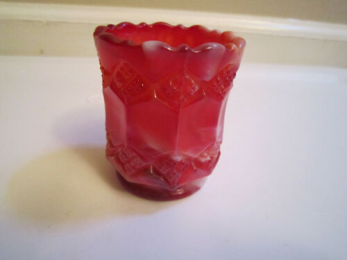 Vintage Red/White Marble Swirl Milk Glass Toothpick Holder