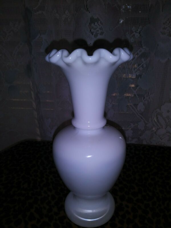 VINTAGE WHITE MILK GLASS FENTON RUFFLED EDGE TOP VASE