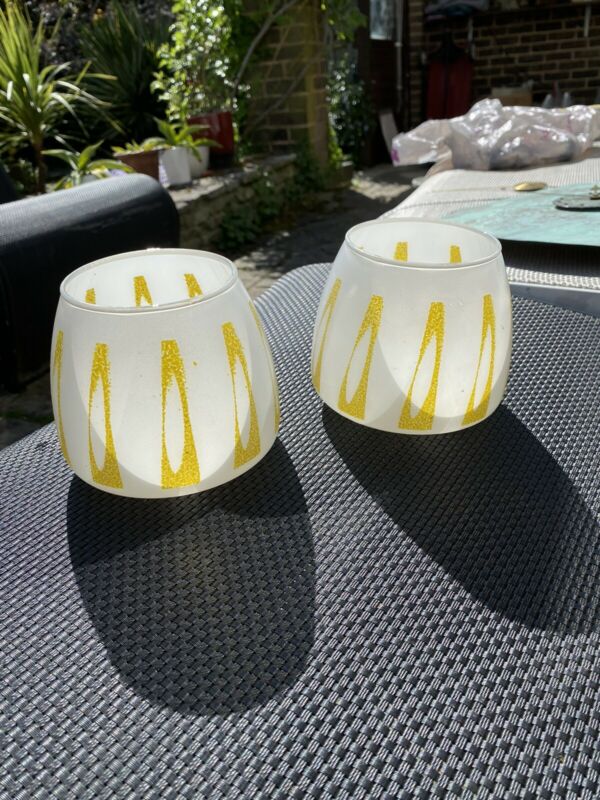 Pair Mid Century Modernist 50s Milk Glass Lamp Shades