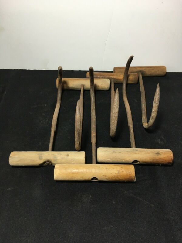Title (ebay affiliate link): 6-Vintage Antique HAY STRAW BALE HOOK Meat Ice Grapple Rustic Iron FARM TOOL