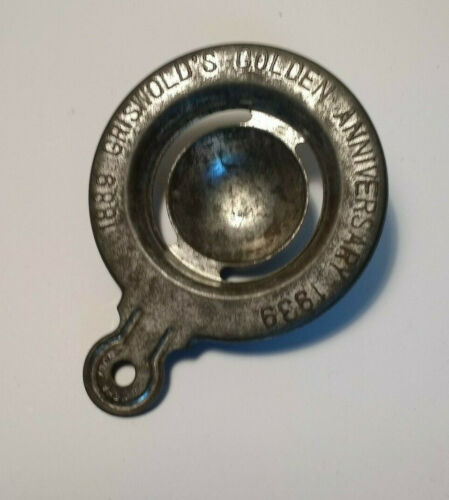 ANTIQUE PRIMITIVE METAL GRISWOLD''S EGG SEPARATOR - ANNIVERSARY GIFT 1889-1939