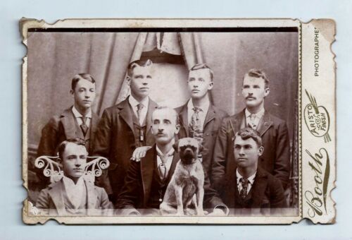 rw Cabinet Card Father and Six Boys with Pug Dog Portrait Antique Photo