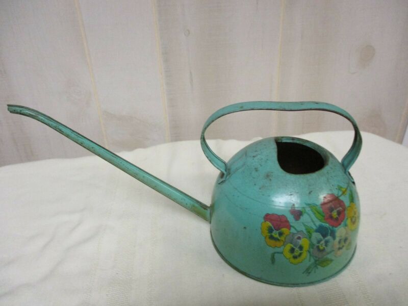 Pretty Vintage Tin Litho Watering Can ~ Pansies