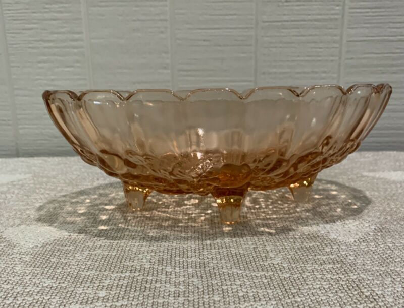 Vintage Fruit Bowl Pink Depression Glass. Pressed Glass Fruit Pattern In Bowl