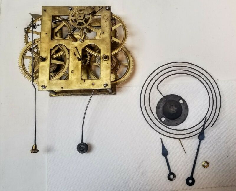 ANTIQUE OGEE CLOCK MOVEMENT WITH BONG SPRING & HANDS