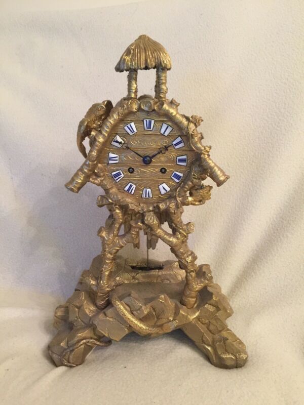 Title (ebay affiliate link): RARE FRENCH TREE HOUSE CLOCK BY POTONIE, PARIS, MANTLE CLOCK,