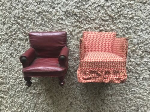 Old vintage Dollhouse furniture Chairs Set 2pc