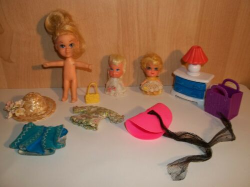 Title (ebay affiliate link): Vintage Liddle Kiddle Type Dolls (3) Clone? Hats, Clothes, Furniture, Fun Stuff