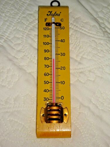 Title (ebay affiliate link): Vintage Tonli Thermometer Sunny Yellow Painted Wooden Holder for the Wall 6"