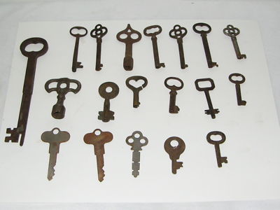 VINTAGE ANTIQUE LOT OF SKELETON KEYS,BARREL,CLOCK,TOYS