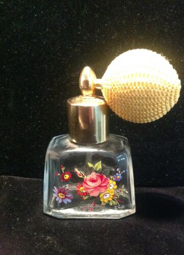 VTG Italy Clear Atomizer Perfume Bottle Hand Painted Flowers Red Blue Yellow