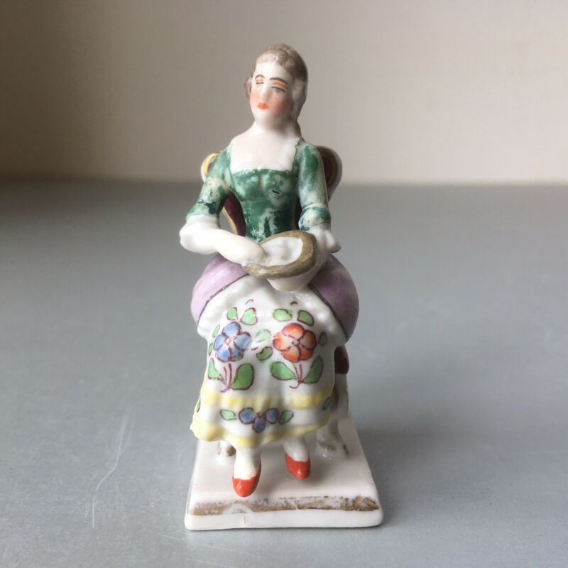 Title (ebay affiliate link): Miniature Antique Italian Capodimonte Porcelain Figurine of a Seated Lady