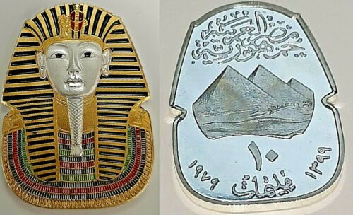 Title (ebay affiliate link): Egypt Pharaoh Coin Medal Dynasty Hieroglyphics Cairo Mummy Gold Silver Vintage
