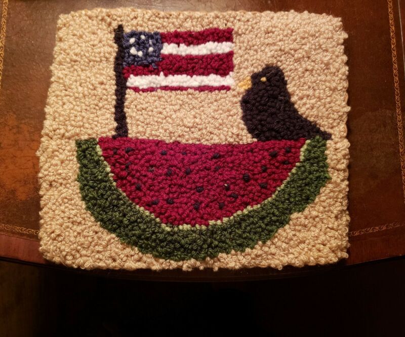 Title (ebay affiliate link): Handmade Primitive Americana Crow and Watermelon Hooked Rug**Primitive