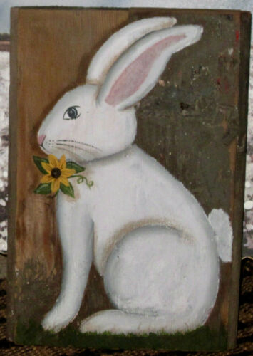 Title (ebay affiliate link): *~*PRIMITIVE*~* HP FOLK ART PRIM BUNNY *~* SUNFLOWER *~* RECLAIMED WOOD
