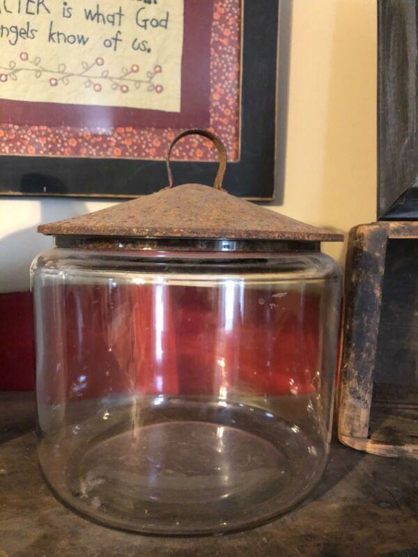 antique primitive farmhouse pantry jar 1/2 gal rusty lid used hard to find rare