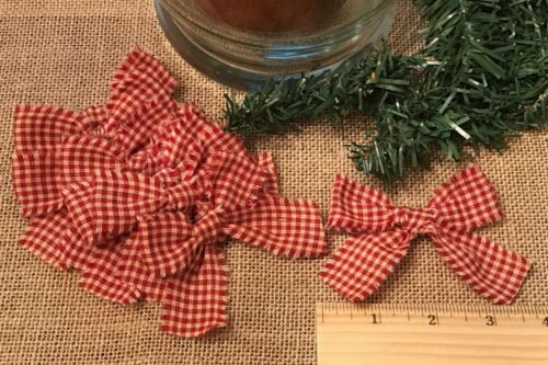 9 Homespun Handmade Bows BARN RED SMALL CHECK Primitive Farmhouse Christmas A2