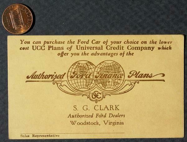 1920-30s Era Woodstock,Virginia Ford Motor Cars Finance Company business card!*