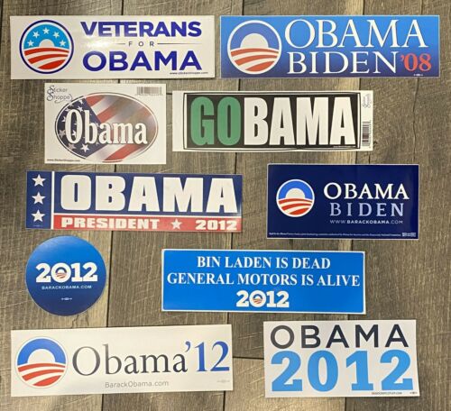 Title (ebay affiliate link): Collection Set of 10 Barack Obama For President 2008 2012 Bumper Stickers