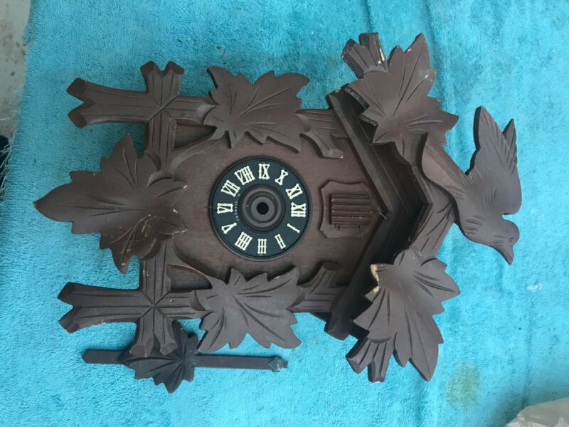 Title (ebay affiliate link): Antique brown cuckoo clock Case crown and pendulum only