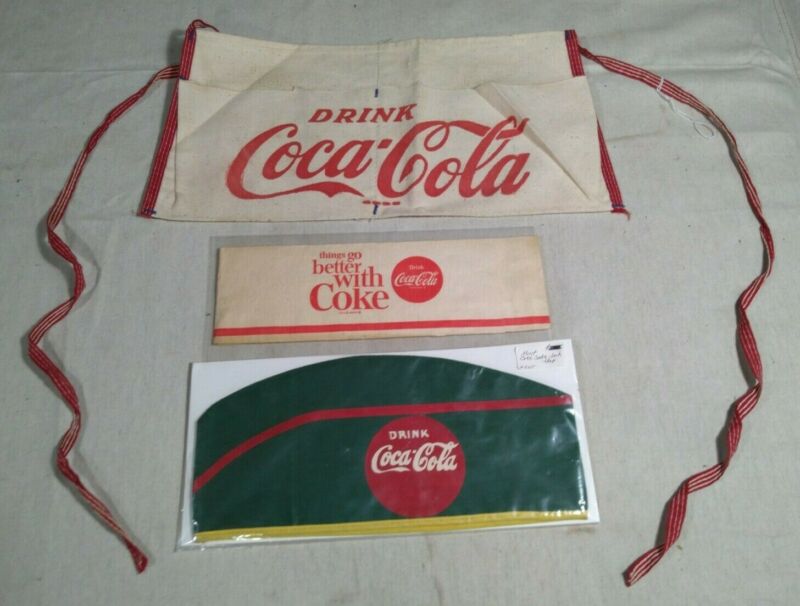 Title (ebay affiliate link): 1950''s Coke Cloth "Soda Jerk''s" Hat, Baseball Vendor''s Change Apron & Paper Hat!