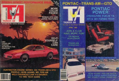 Pair Thunder Am magazines, FEB 1982, APRIL 1982, GTO, Firebird
