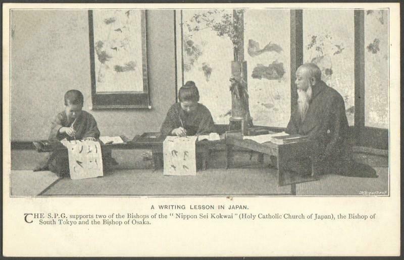Title (ebay affiliate link): JAPAN Postcard c1910 - A Writing Lesson - The Holy Catholic Church of Japan
