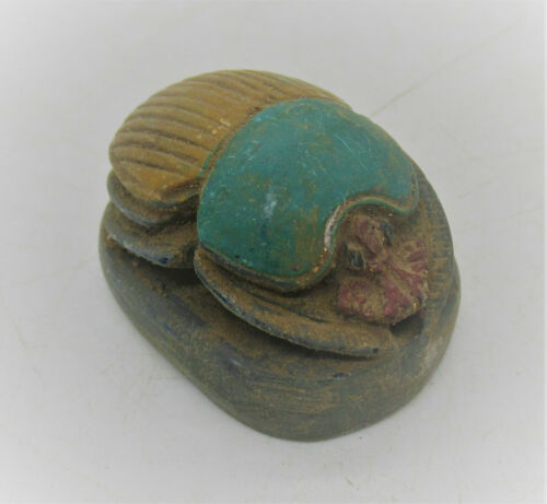 Title (ebay affiliate link): CIRCA 500 BCE ANCIENT EGYPTIAN GLAZED FAIENCE SCARAB BEAD SEAL RARE