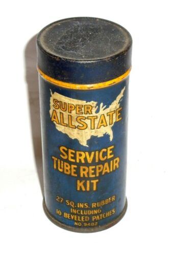 Title (ebay affiliate link): Nice Old Litho Super Allstate Tire Repair Kit Not Motor Oil Advertising Tin Can