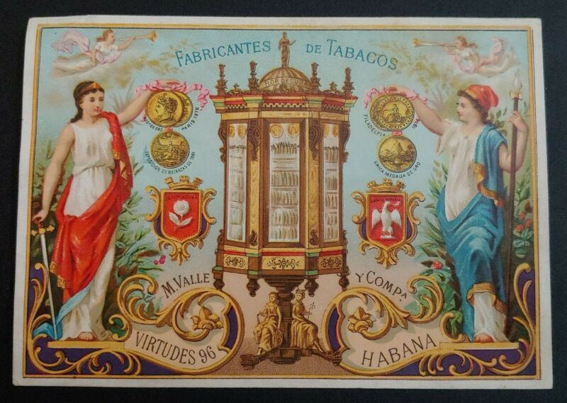 Title (ebay affiliate link): Antique Trade Card FABRICANTES DE TABACOS, TOBACO AUG. 1879, VIRTUDES 96 HABANA
